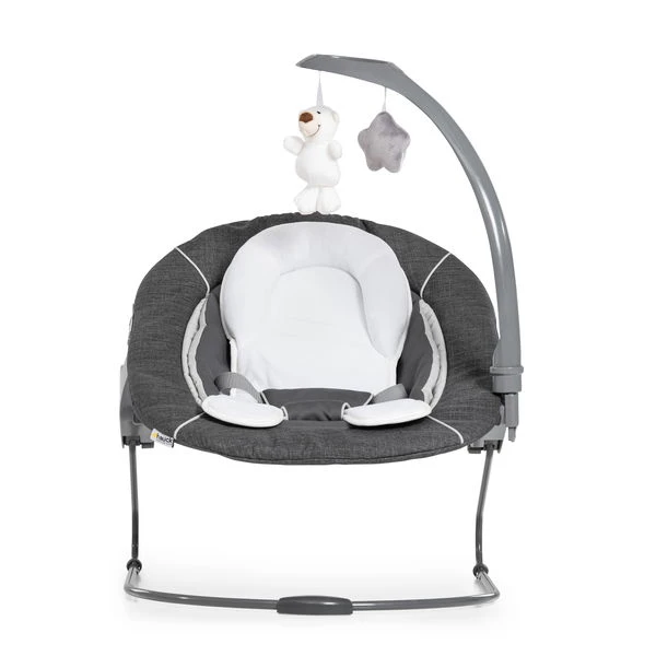Der ergonomisch geformte und weich gepolsterte Alpha Bouncer Deluxe lässt sich mit nur wenigen Handgriffen direkt auf dem hauck Holzhochstuhl montieren. Der im Lieferumfang enthaltene Sitzverkleinerer stützt das Köpfchen und die zusätzliche seitliche Polsterung sorgt für höchsten Komfort. Die große Liegefläche lässt sich mit nur einer Hand in mehreren Stufen flach stellen. So finden Eltern immer die richtige Position zum Füttern oder Spielen. Durch die erhöhte Position auf dem Kinderstuhl wird beim Füttern der Rücken von Mama und Papa geschont. Die süßen Anhänger am Mobile regen den kleinen Schatz zum Greifen und Drehen an und fördern die motorischen Fähigkeiten. Der Spielebogen kann jederzeit zur Seite gedreht oder abgenommen werden. Der 3-Punkt-Gurt sorgt für die Sicherheit des Kleinen.